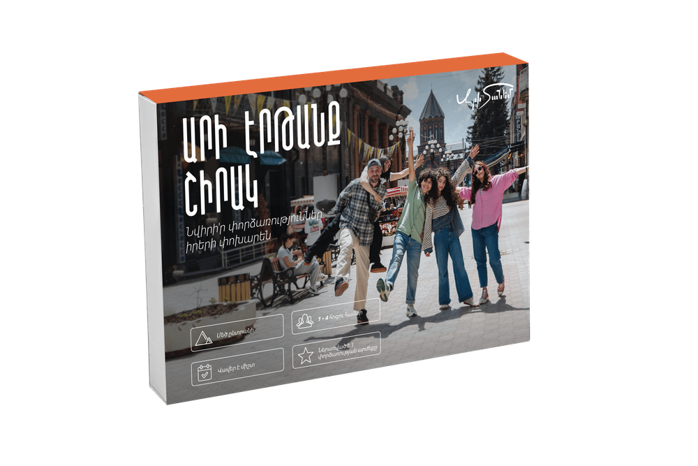 «Արի՛ Էրթանք Շիրակ» նվեր տուփը հրավիրում է վերաբացահայտելու Շիրակի արվեստը, մշակույթը, համերը և ջերմ հյուրընկալությունը։ Մշակութային ամենատարբեր փորձառություններ՝ Շիրակի հայտնի ու անհայտ անկյուններում: